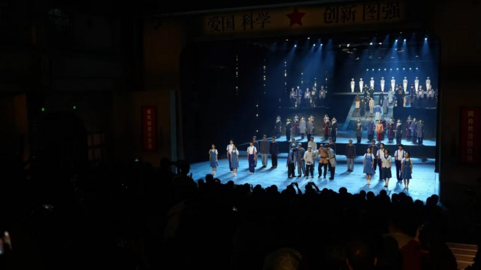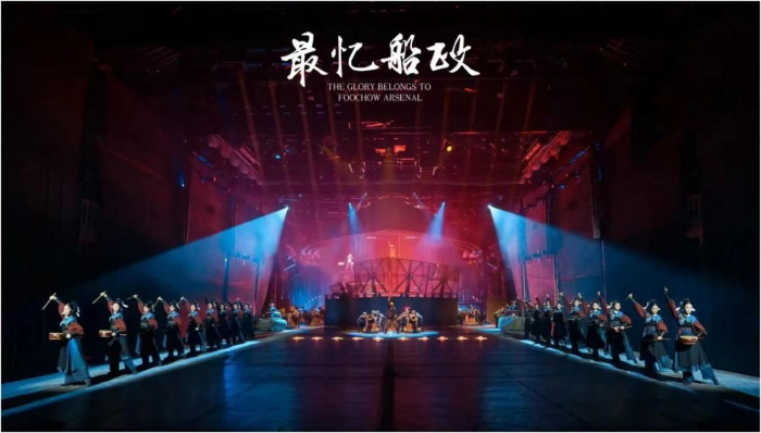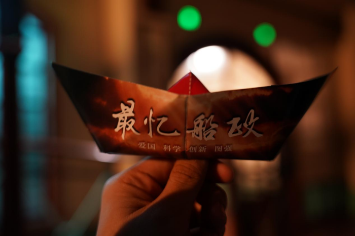 師生一行來到中國船政文化城觀看“全國首部海洋強國主題多維體驗劇”“中國首臺船政歷史題材立體演藝秀”——《最憶船政》。它以小紙船為起點,通過“少年”“海洋”“夢想”“遠方”隱喻中華民族近代百年圖強復興的不朽征程,傳遞“中國夢”。劇目重現了1866年福州馬尾船政學堂的創辦,船政學堂培育了眾多軍事將領與科技人才,對中國近代化影響深遠。觀眾仿佛親歷左宗棠、嚴復、鄧世昌等先輩的風采,感受他們面對挑戰時的堅韌與自強。面對列強的欺凌,他們展現出“此戰不退”的堅定決心,那份發自肺腑的愛國精神,令人潸然淚下。該劇生動展現我國近現代船政波瀾壯闊的歷史和文化,抒寫中華民族向海圖強、逐夢深藍的奮斗歷程。