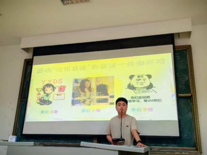 鄭老師以“1分鐘拍手”活動為切入點,引導學生們積極發掘自身潛能,為整場活動奠定了輕松的基調。隨后,鄭老師通過問卷形式現場調查了學生們的考試焦慮狀況,發現了大部分學生都存在著或輕或重的考試焦慮,由此引出了考試焦慮這一話題。