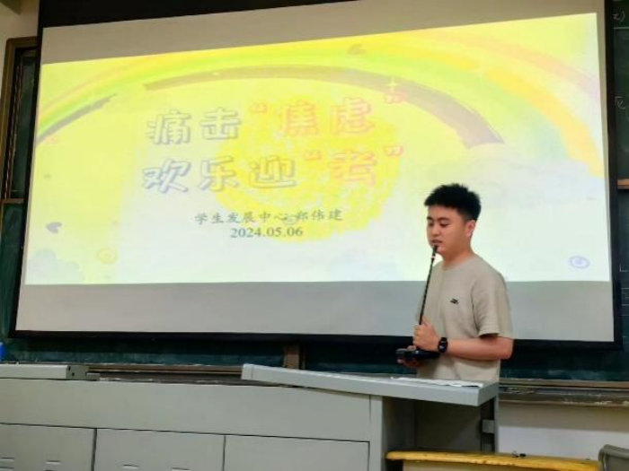 學考在即,為激勵我校學子以積極心態科學備考,5月6日下午,我校學生發展中心的鄭偉建老師在第二階梯教室為2022級同學們開展了以“痛擊焦慮,歡樂迎考”為主題的團體心理輔導活動。