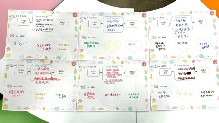 總結環節——自“郵”啟新篇。同學們結合活動,思考用合理的方法適應新學期,并通過傳遞學習單的方式為同伴送上祝福。這一階段讓學生之間的情感得到交流,認識到成長的意義。