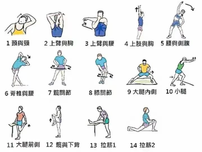4.熱身準備:運動員們在比賽前應進行適當的熱身運動,以減少肌肉拉傷和其他運動損傷。賽前活動腰部與四肢,可以提高肌肉的力量、彈性和靈活性,同時可以提高關節韌帶的機能,增加韌帶的彈性,使關節腔內的滑液增多,從而防止肌肉和韌帶的損傷,減少扭傷的發生。
