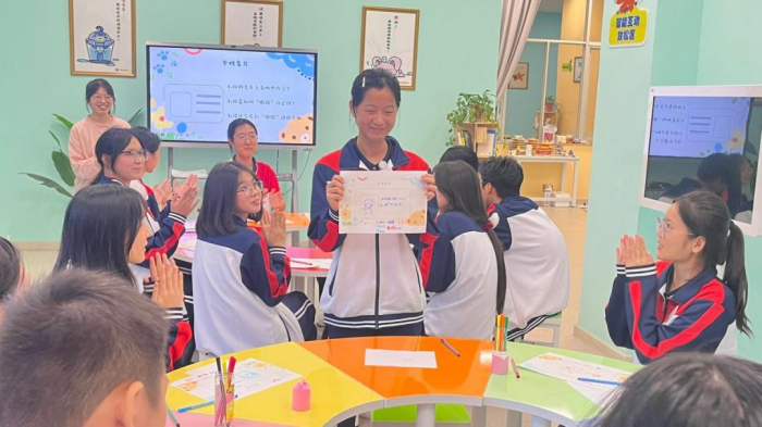 在“組建友誼小船”環(huán)節(jié),同學們紛紛利用自己制作的個性名片向他人介紹自己,體驗交友過程。本環(huán)節(jié)不僅鍛煉了同學們的自我表達能力,也進一步增進了彼此的了解與信任,氣氛熱烈,收獲滿滿。