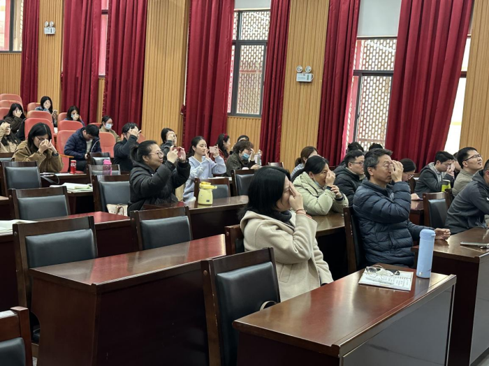 在講座的高潮部分,心理老師現場演示了EFT的操作方法,并指導參會的教學團隊成員掌握如何找到壓力事件、給壓力事件評級、用特定句式描述壓力事件、選擇提示語以及按順序敲擊穴位等步驟。通過生動的案例和詳細的講解,參會老師們對EFT有了更深入的了解和認識。