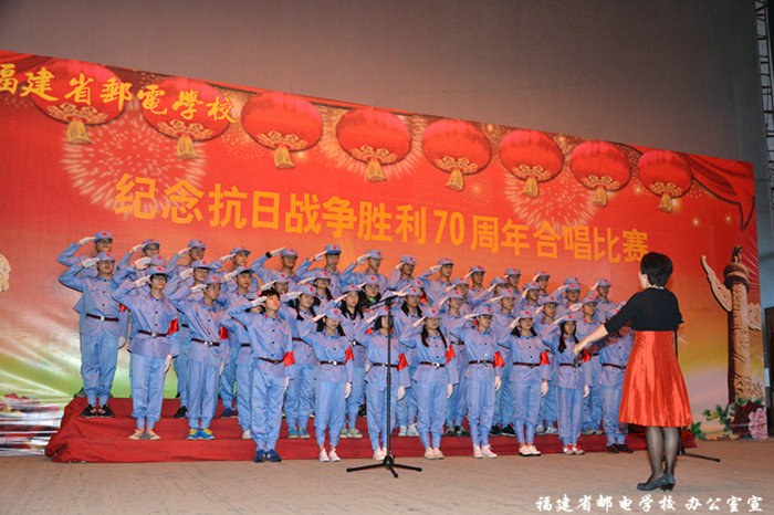 6月5日下午,由學校團委舉辦的紀念抗日戰爭勝利70周年合唱比賽總決賽在學校大禮堂精彩上演。校黨委副書記、副校長謝福仁、學生與保衛科科長蔡愛芳、有關班主任以及16個決賽班級學生參加了本次合唱總決賽。