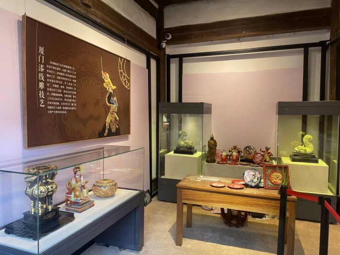 走進(jìn)展示館,同學(xué)們現(xiàn)場感受了福州三寶脫胎漆器、牛角梳、油紙傘以及十多項福建非遺技藝,如:微雕、剪紙、廈門漆線雕、福州壽山石、唐卡漆畫、松溪版畫等。大家還了解了福州文化名人的生平故事和文化成果,學(xué)習(xí)了習(xí)主席對福建非遺傳承與守護(hù)所做的貢獻(xiàn)。
