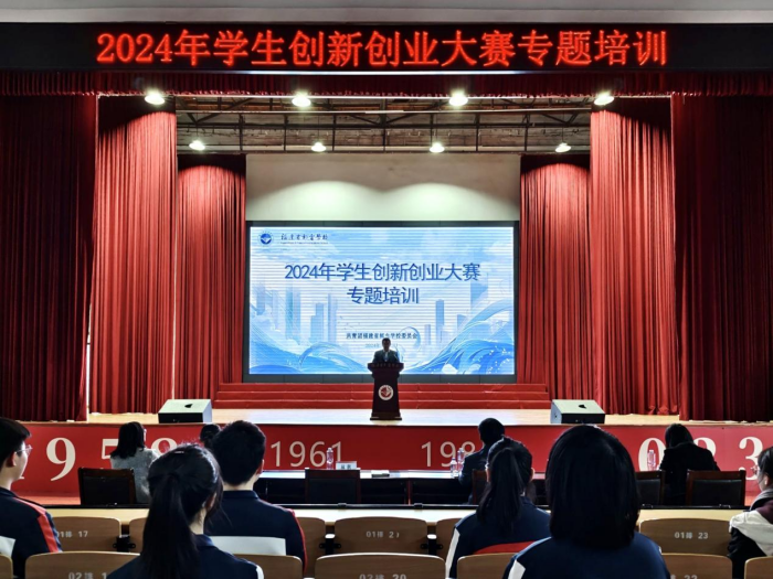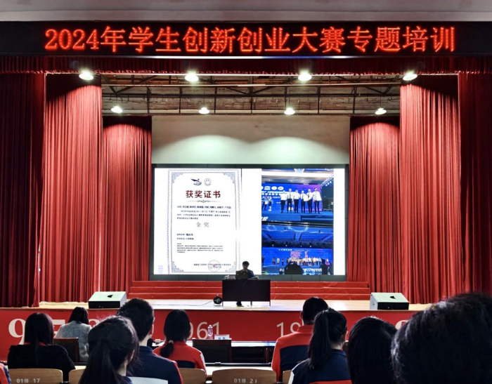 為深入貫徹落實習近平總書記關于教育工作的重要論述,引導廣大師生積極參與創新創業競賽活動,激發同學們的創新創業熱情,提升“互聯網+”大賽的項目質量,推進學校雙創育人工作,3月21日下午,我校邀請國家人社部SYB創業培訓師,國家級、省級創新創業大賽專家評委魏洪茂教授在校禮堂開展《中國國際互聯網+大學生創新創業大賽解讀》專題講座。校黨委委員、副校長林鵬,校團委老師與師生代表400余人共同聆聽此次講座。
