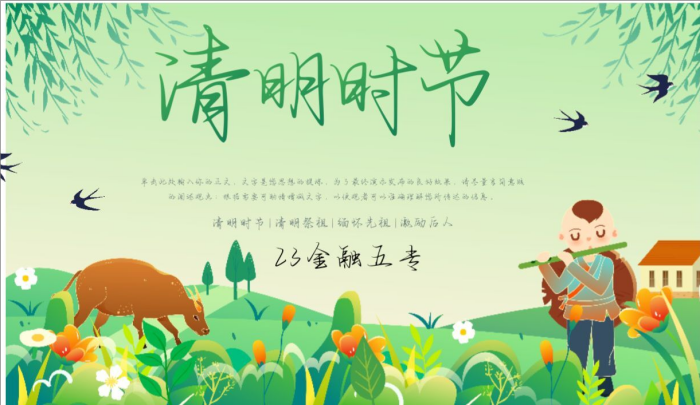 活動期間,各班級、團支部通過課件制作、視頻觀摩,線上主題班團會等形式,組織同學們充分了解中國傳統節日——清明的歷史淵源和文化內涵,了解革命烈士無私奉獻、敢于犧牲的先進事跡,引導學生飲水思源,銘記英烈事跡,繼承英烈遺志,厚植家國情懷。