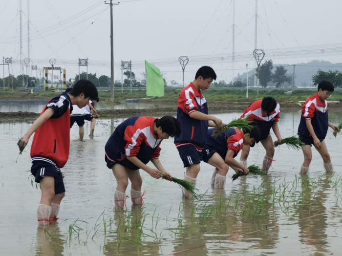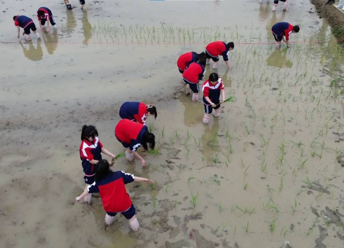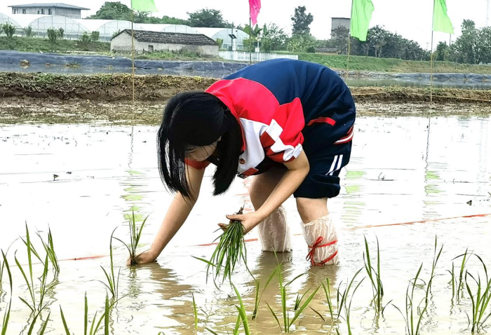 隨后,師生們來到秧田,在老師的指導下,同學們從分離秧苗、插秧技巧等方面學習規范插秧。大家擼起袖子,挽起褲腳,踩著松軟的泥土,握著綠油油的秧苗,埋頭彎腰,辛勤勞作,干勁十足。