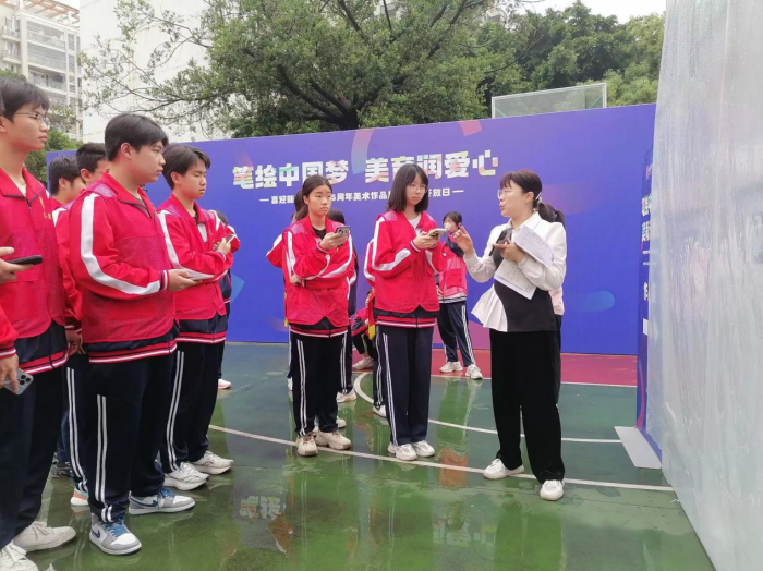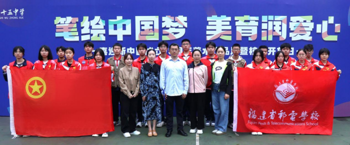為加強團員青年思想政治引領,激發廣大福郵學子愛黨、愛國、愛社會主義的真摯情感,傳承“五四精神”,弘揚中華優秀傳統文化,5月5日上午,“郵·愛”青年志愿者赴福州市第十五中學助力由中共臺江區委文明辦、臺江區教育局、中央美術學院附屬實驗學校、臺江區美術家協會主辦的“筆繪中國夢 美育潤愛心”——喜迎新中國成立75周年美術作品展活動。我校黨委委員、副校長林鵬,團委老師及“郵·愛”青年志愿者、團員代表受邀參加此次活動。
