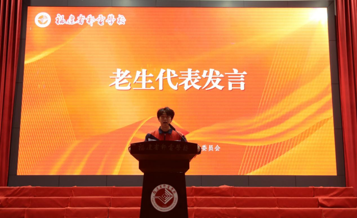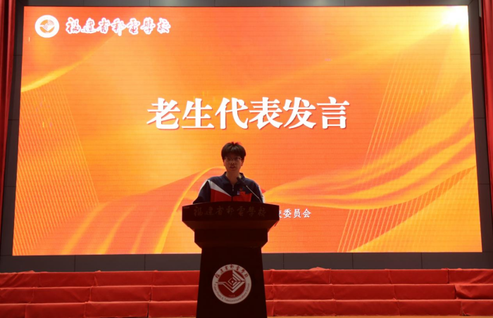 老生代表組織部22物聯(lián)網(wǎng)1班楊萬權(quán)發(fā)言,他表示研學(xué)實踐活動是一次非常寶貴的學(xué)習(xí)機會,可以走出課堂,親身參與到各種體驗與學(xué)習(xí)活動中,希望同學(xué)們一起加油,朝著甘于奉獻(xiàn)、敢于擔(dān)當(dāng)、善于協(xié)作、勇挑重?fù)?dān)的福郵青年榜樣努力奮斗!