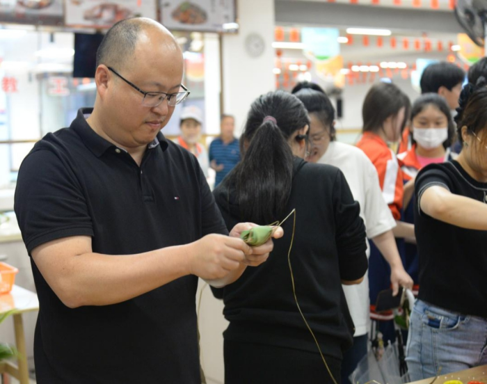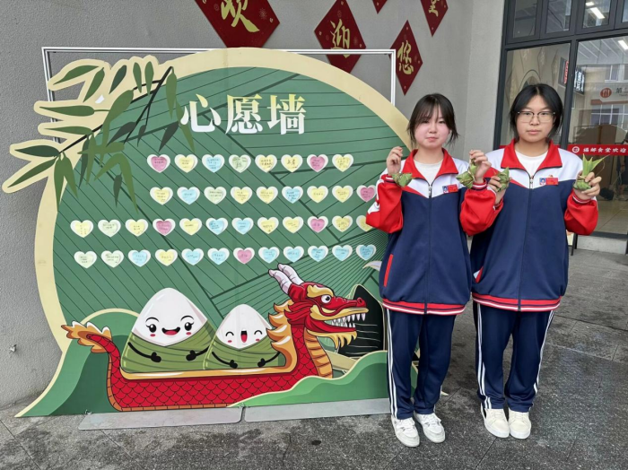6月5日下午,校團委聯合工會、總務科組織開展“我們的節日·端午”包粽子活動,校領導到食堂與師生們一起包粽子、共度端午佳節。師生分組學包粽子,折粽葉、裝糯米、裹粽葉、纏粽繩,現場其樂融融,充滿了濃濃的節日氛圍。學考班級的同學們在心愿貼上寫下愿望,貼在心愿墻上,表達了對未來的展望。