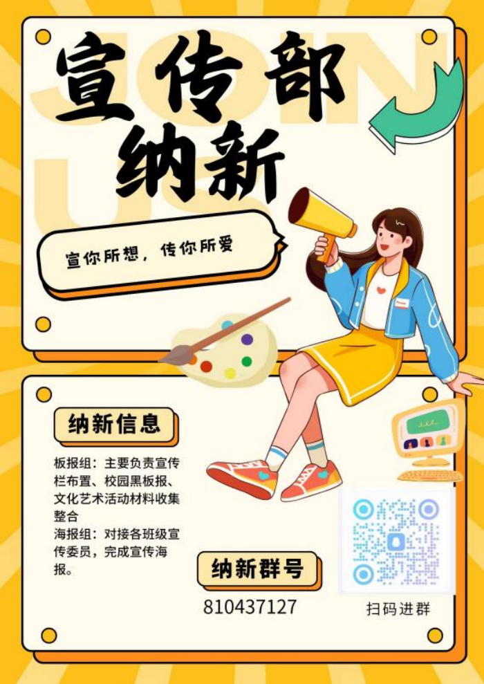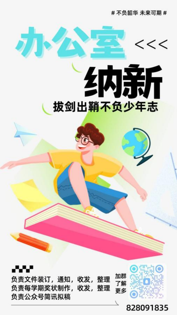 讓我們用有限的力量,放出無限的光芒。生活的真諦就是站在浪尖上欣賞最美的風景,宣傳部邀你共繪青春華章!