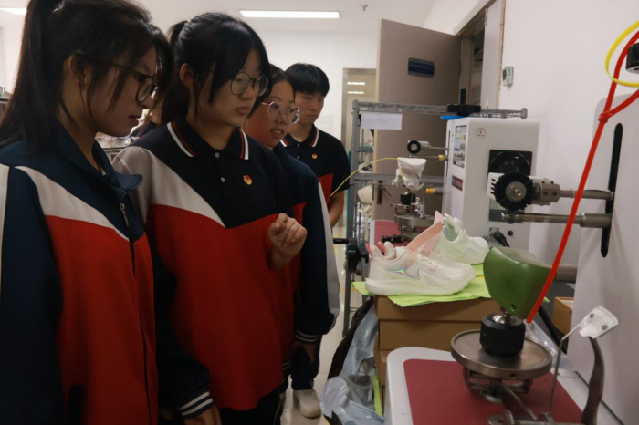 參觀過程中,同學們對部分實驗項目認真觀察并積極提問,現場測試隨身攜帶的防曬衣、防曬傘的抗紫外線性能,深入了解“黑心棉”的特征和危害、口罩檢驗過程、羽毛羽絨鑒別常識、常見纖維的微觀形貌特征、皮革鑒別小常識等等。