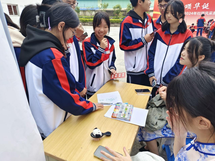 集章游戲互動區趣味橫生,歡樂與挑戰并存,增進同學情誼。足球社的射門體驗、動漫社的你畫我猜、國學社的古詩接龍等豐富的互動游戲展現社團的獨特魅力。