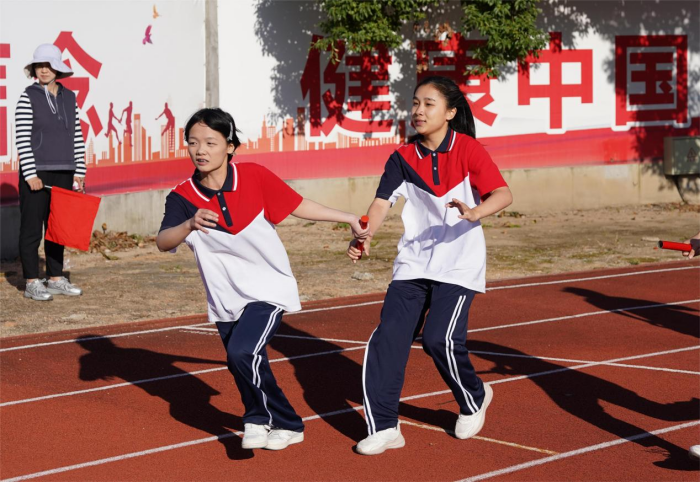 接力賽選手“動如脫兔”,飛速奔跑展風采。