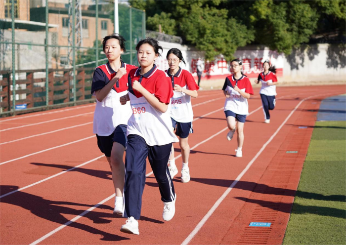 長跑賽道上,健兒們“堅持不懈”,揮灑汗水。