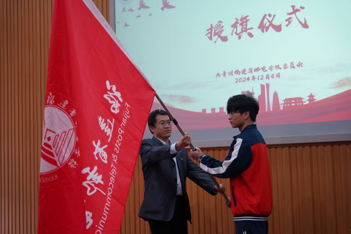 最后,林鵬副校長親手將校旗授予研學班級助理代表,這面旗幟不僅代表著學校的榮譽與期望,更承載著同學們對未來的無限憧憬與夢想。