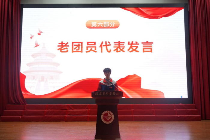 新發展團員代表、24應用五專班鄭嘉琦同學表達了她入團的喜悅與自豪,代表新團員鄭重承諾:堅定信念、努力學習基礎知識、積極投身社會實踐、團結協作,讓青春在奮斗中綻放最耀眼的光芒!老團員代表、23物聯網2班林志彬同學上臺向大家分享自己成為團員后的收獲與成長,并鼓勵新團員們努力學習、增長才干,成為有理想、敢擔當、能吃苦、肯奮斗的新時代好青年。