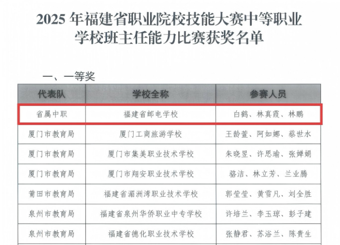 喜報!我校在2025年福建省職業(yè)院校技能大賽班主任能力比賽中斬獲佳績