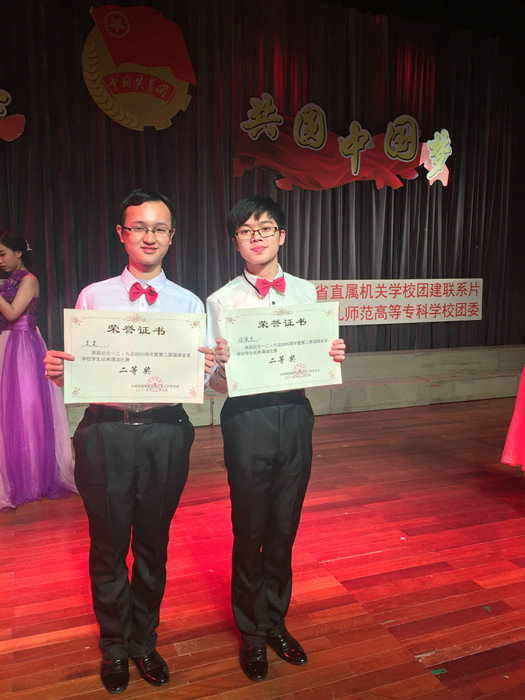 為引導廣大學生深入學習、了解和掌握傳統經典文化精髓,努力弘揚和傳承優秀中華傳統文化,由福建省直屬機關團工委和福建省教育廳直屬機關團委主辦的“紀念12·9運動80周年暨第二屆省直學校經典誦讀”比賽于11月29日上午8:00在福建幼兒師范高等專科學校隆重舉辦。我校13通信大專1班的徐俊杰、吳昊和15信息技術大專班的吳涵宇、施詩敏四位同學參加了此次比賽。