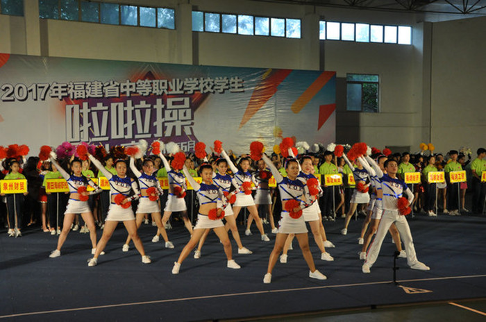2017年6月4日,由福建省教育廳主辦、福建省中等職業教育體育協會承辦、福建省郵電學校協辦的福建省中等職業學校首屆學生啦啦操比賽在我校室內體育館拉開序幕!全省共有31所學校派出代表隊參賽。