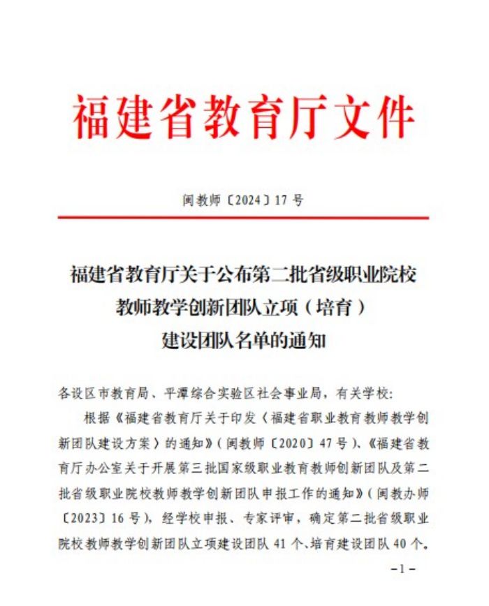 日前,省教育廳確定了第二批省級職業院校教師教學創新團隊立項建設團隊、培育建設團隊名單,經學校申報、專家評審、網絡公示,我校“現代通信技術應用”專業群團隊成功入選。