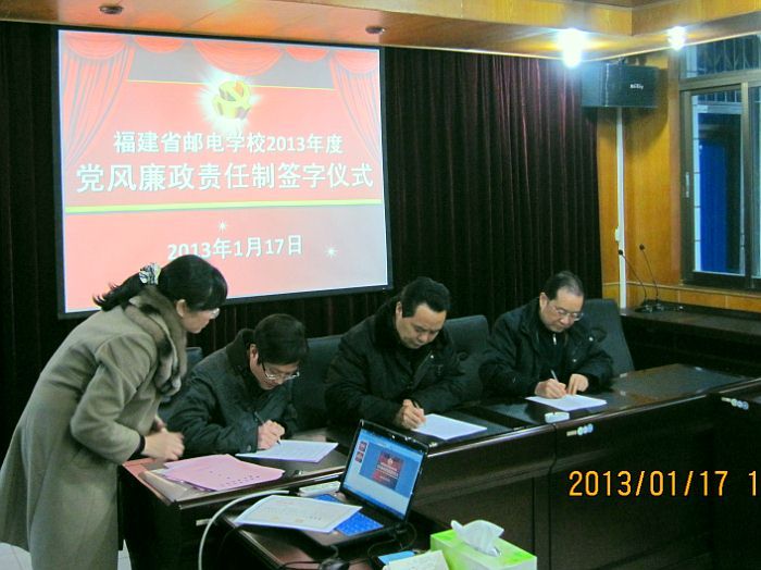 會上,我校領(lǐng)導(dǎo)班子及全體中層干部首先簽署了本年度的黨風(fēng)廉政建設(shè)責(zé)任書,明確了我校今年黨風(fēng)廉政建設(shè)責(zé)任目標(biāo)、責(zé)任范圍及責(zé)任內(nèi)容,確保本校2013年度黨風(fēng)廉政建設(shè)各項(xiàng)工作能落到實(shí)處。之后,與會人員在王錦副校長的組織下,共同學(xué)習(xí)了《中共福建省教育工委、福建省教育廳關(guān)于2013年元旦春節(jié)期間切實(shí)加強(qiáng)教育系統(tǒng)廉潔自律和厲行節(jié)約工作的通知》(閩教監(jiān)〔2012〕12號)與《中共福建省教育工委、福建省教育廳關(guān)于印發(fā)貫徹落實(shí)改進(jìn)工作作風(fēng)、密切聯(lián)系群眾實(shí)施辦法的通知》(閩委教綜〔2013〕1號)等的文件精神,并觀看了武漢科技大學(xué)校長劉光臨和黨委書記吳國民貪腐案的廉政建設(shè)教育片——《警示與反思》。