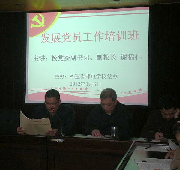 為進一步促進我校發(fā)展黨員工作制度化、規(guī)范化和科學化,學校黨辦于3月6日下午組織了發(fā)展黨員工作專題培訓會議。會議由黨辦主任方建新同志主持,校黨委副書記、副校長謝福仁同志主講,在職黨支部的支部委員和黨辦工作人員近20人參加。
