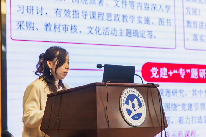 她圍繞我校經管與圖書中心黨支部落實“一融雙優”,推動經管專業教學、圖書信息工作雙促進、雙提高,介紹了“‘圖’有所長,‘經’益求精”支部特色黨建品牌的內涵和成效。