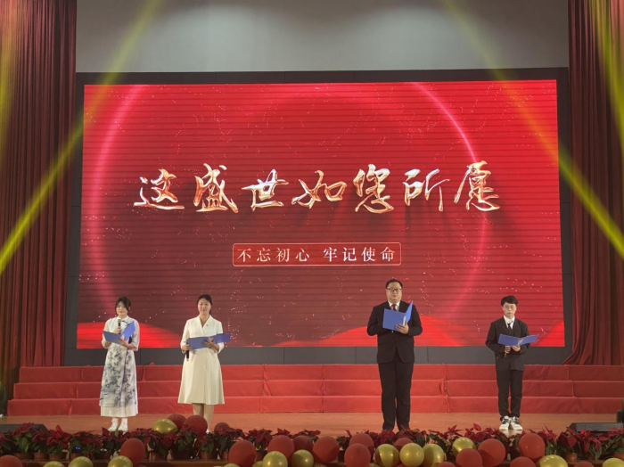 林聰老師、丁晨老師、李瀚潔、林晨宇朗誦《這盛世如您所愿》,語(yǔ)調(diào)慷慨激昂、激情澎湃,娓娓傾訴著對(duì)祖國(guó)母親、對(duì)中國(guó)共產(chǎn)黨的熱愛(ài),出色的表現(xiàn)贏得全場(chǎng)熱烈的掌聲。