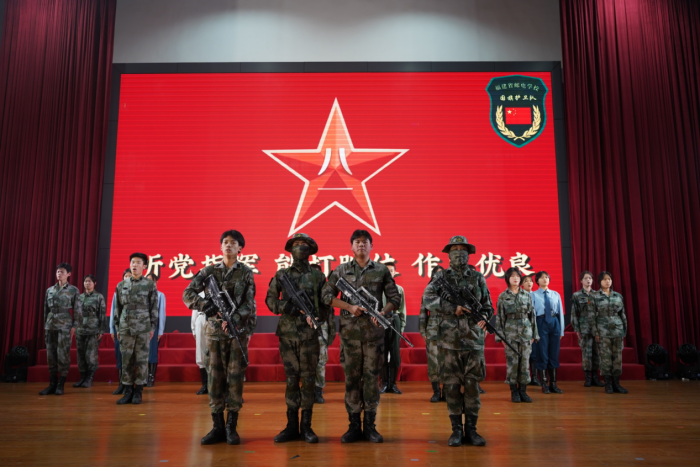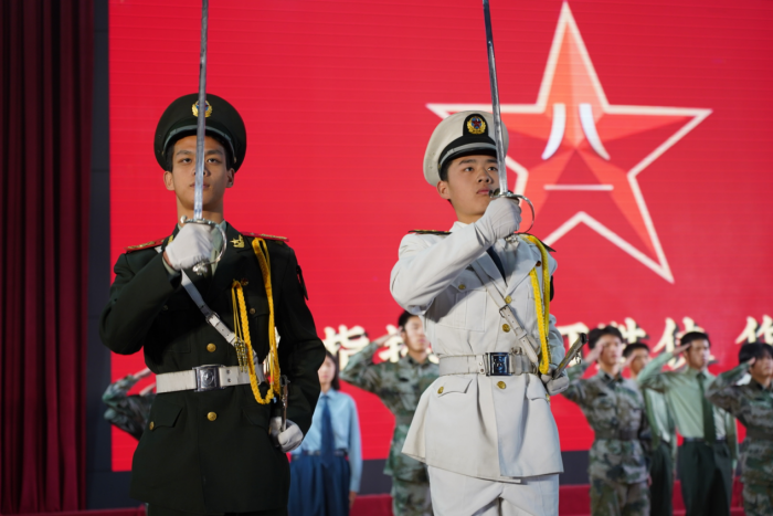 隨后,國(guó)旗護(hù)衛(wèi)隊(duì)演繹《國(guó)護(hù)意志,自強(qiáng)不息》,他們以昂首挺拔的姿態(tài)與真摯細(xì)膩的情感,展現(xiàn)了福郵學(xué)子立志報(bào)國(guó)的崇高理想和奮發(fā)向上的青春風(fēng)采。