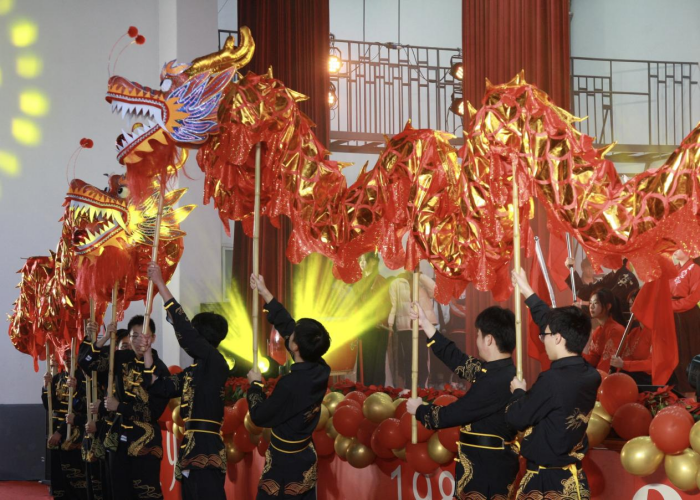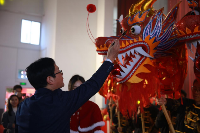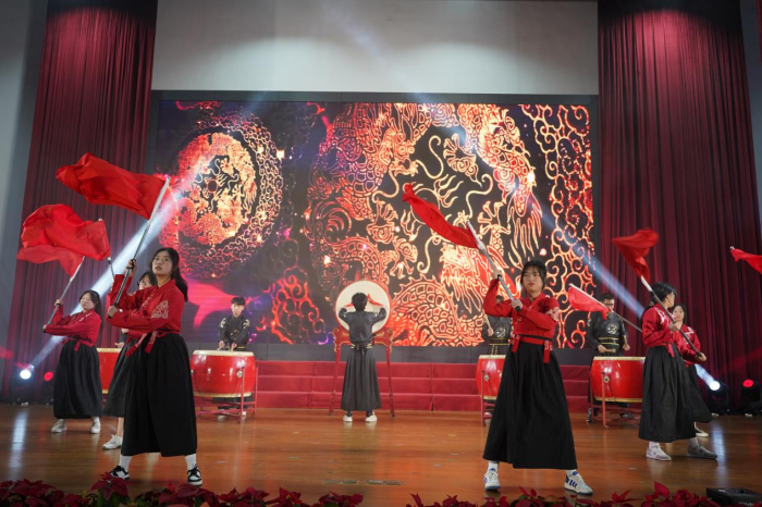 活動(dòng)在龍鼓社團(tuán)、22電商五專班帶來(lái)的開(kāi)場(chǎng)表演《鼓舞盛世》中拉開(kāi)序幕,徐錫光校長(zhǎng)現(xiàn)場(chǎng)為金龍點(diǎn)睛,場(chǎng)面熱烈隆重。