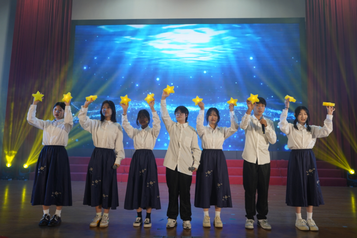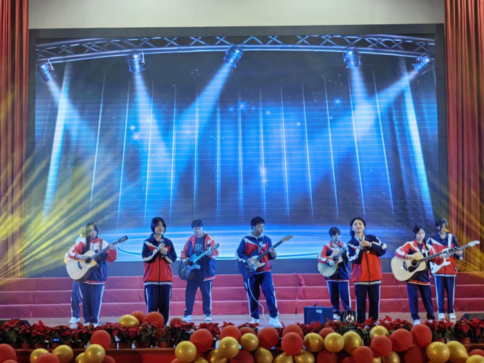 在歌曲串燒節(jié)目中,校音樂(lè)社小組帶來(lái)的《知足》、吉他社彈唱的《我的未來(lái)式》、陳語(yǔ)璐老師與社團(tuán)學(xué)生共同演唱的《如愿》逐一上演,跳躍的音符演奏著青春的活力,展示著青春的風(fēng)采。