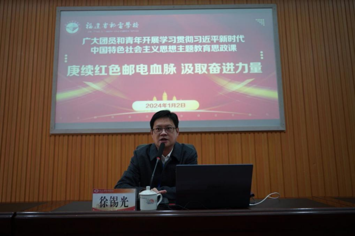 思政課上,徐錫光校長從“中國郵電通信高瞻遠矚”“中國郵電通信發展概覽”“福建郵電紅色印記”和“紅色郵電精神育時代新人”四個專題展開講授,帶領團員青年回顧了從“半部電臺”“數字福建”到“數字中國”的百年紅色郵電史,并指出團員和青年要立足于弘揚偉大建黨精神和紅色郵電精神,學思踐悟,深化主題教育學習成果,牢記使命擔當,錘煉品德修為,奮力譜寫新時代紅色郵電新篇章。