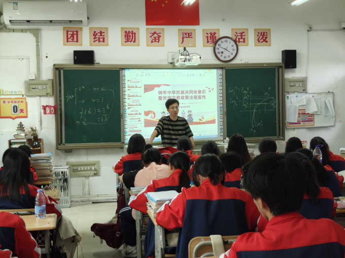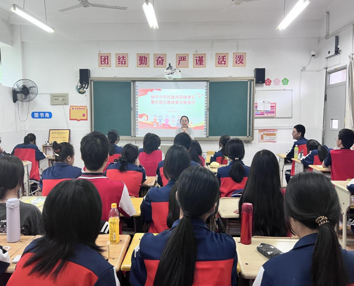在班會(huì)上,各班主任以習(xí)近平新時(shí)代中國(guó)特色社會(huì)主義思想為指導(dǎo),圍繞實(shí)現(xiàn)中華民族偉大復(fù)興主題,向?qū)W生們?cè)敿?xì)解讀了習(xí)近平法治思想及民族宗教工作的重要論述。班主任強(qiáng)調(diào),各民族學(xué)生要像石榴籽一樣緊緊抱在一起,形成一個(gè)凝聚人心、團(tuán)結(jié)奮進(jìn)的中華民族大家庭。
