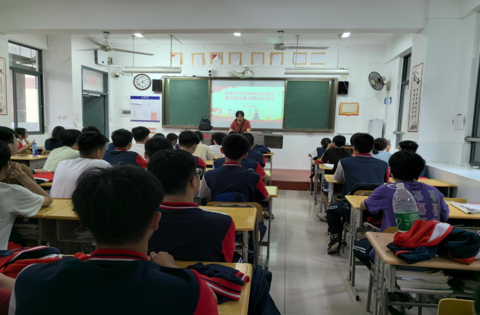 為深入學(xué)習(xí)貫徹黨的二十大精神,落實(shí)習(xí)近平總書記關(guān)于加強(qiáng)和改進(jìn)民族工作的重要思想、宗教工作的重要論述以及習(xí)近平法治思想, 2024年6月17日,福建省郵電學(xué)校學(xué)生與保衛(wèi)科組織舉辦鑄牢中華民族共同體意識(shí)暨民族宗教政策法規(guī)宣傳主題班會(huì)活動(dòng)。