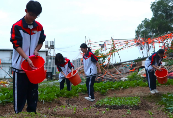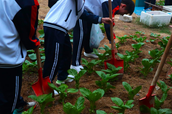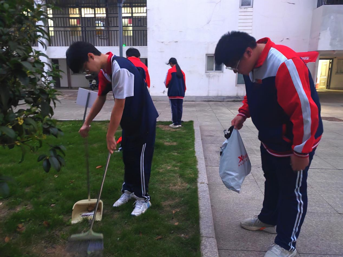 最后,各班級學生代表返回校內生態勞動實踐基地,在校內衛生包干區開展勞動實踐活動。