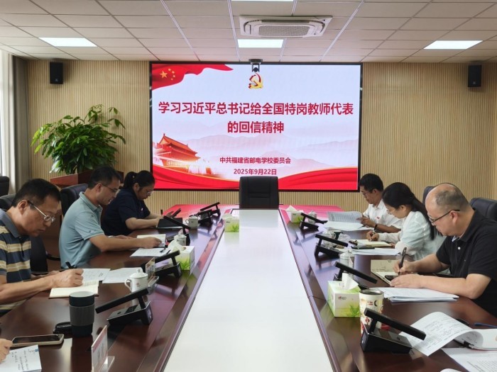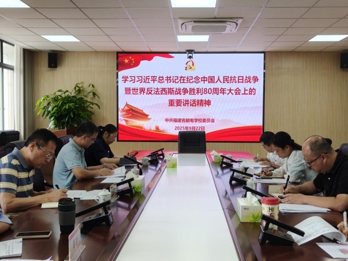 9月22日,福建省郵電學校召開黨委會,組織“第一議題”學習貫徹習近平總書記在紀念中國人民抗日戰爭暨世界反法西斯戰爭勝利80周年大會上的重要講話以及給全國特崗教師代表的回信精神等8項內容。校黨委書記包曉暉主持會議并講話。