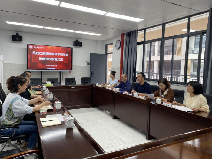 10月10日,福建商貿學校黨委書記蘭享華,校長郭曙光,副校長陳秀美,紀委書記、副校長黃登龍帶領該校相關部門人員一行7人,來我校參觀交流。我校黨委副書記、校長蘇嶸,副校長陳霓出席交流會,教務科負責人及業務經辦人員參會。