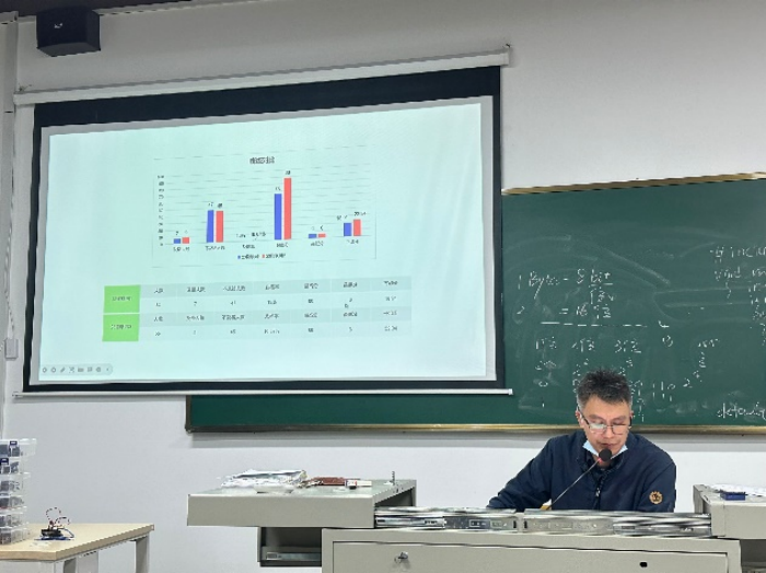 會上陳銘、白鶴、邵奎丹、王豐四位學考備課小組組長分別對《程序設計》《數字電子技術基礎》《電工技術基礎與技能》《Visual Basic程序設計》四門課程進行成績分析發言,主要對成績分析對比、目前課程存在的問題以及后期教學改進辦法進行交流,通過橫向縱向對比了解學生的學習情況,就各學科的試卷內容與出題難度進行研討,從試題結構、知識點覆蓋面等對試卷進行深度分析。最后,馮力主任總結發言,首先他肯定了老師們的教學能力,其次鼓勵老師們積極探索學考課程的模式,勤研討、不放松,端正學生學習態度,提高課堂學習效率,查缺補漏,努力提升教學質量。