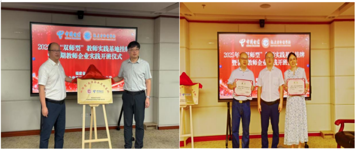 7月11日上午,福建省郵電學校與中國電信股份有限公司福州分公司在中國電信福州分公司大樓隆重舉行了“雙師型”教師企業實踐基地掛牌儀式暨2025年暑期教師企業實踐培訓開班典禮。中國電信福州分公司副總經理畢超、福建省郵電學校副校長林則烽出席。