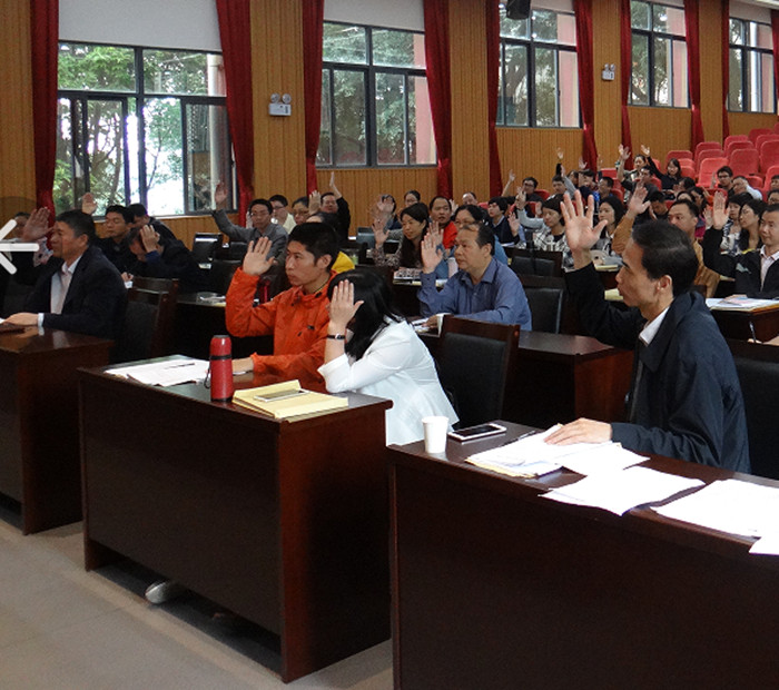 本次教代會由我校工會主席王錦同志主持。預備會議上,校領導以及各代表團團長審議通過了本屆會議議程和提案工作報告。正式會議在莊嚴的國歌聲中宣告開始。會上,劉孔恩校長和工會主席王錦同志分別作了校長工作報告和工會工作報告,徐錫光同志作了學校財務和工會經費收支使用報告,黃惠彬同志就我校修訂《學校章程》和制訂《學校十三五工作規劃》的情況作了說明;與會全體代表還對工會建家、工會主席、副主席工作進行了民主評議。分組討論時,各代表團成員認真研究討論了《學校章程》和《學校十三五工作規劃》,并提出許多寶貴的修改意見。最后,全體代表一致表決通過了《學校章程》和《學校十三五工作規劃》。