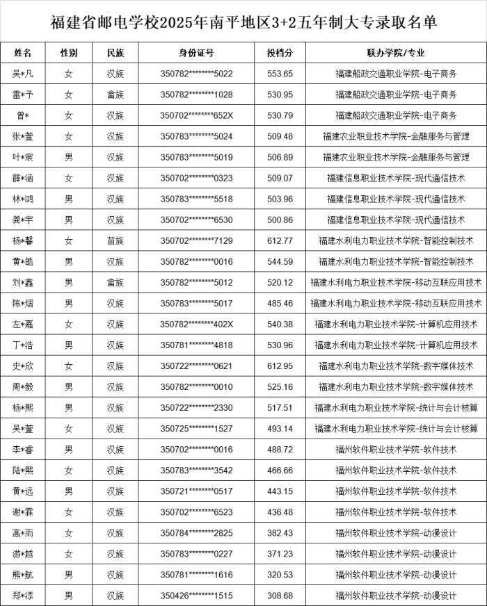 您現在的位置: 首頁 > 學校信息 > 通知公告通知公告 福建省郵電學校2025年南平地區3+2五年制大專錄取名單 發布時間:2025-07-24 //echo ;?> 來源:招生辦公室點擊: 招生熱線:0591-83573573 學校地址:福州市倉山區上渡路李厝山60號 上一篇:福建省郵電學校2025年中本貫通3+4三明市錄取名單 下一篇:福建省郵電學校2025年中本貫通3+4南平市錄取名單