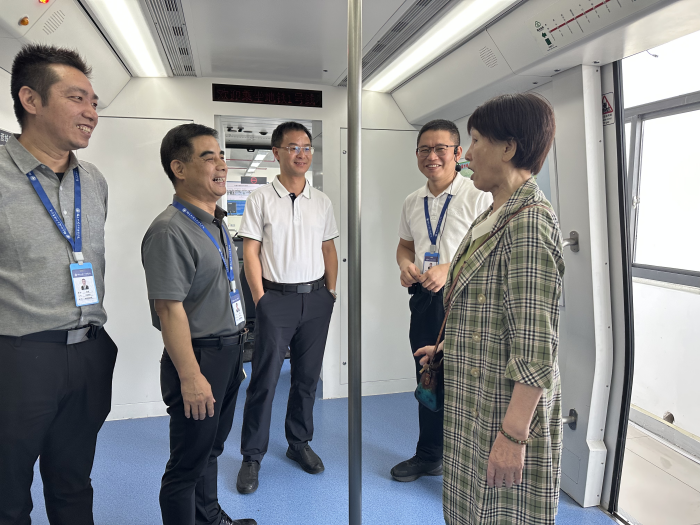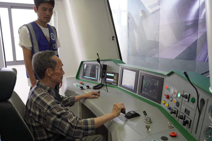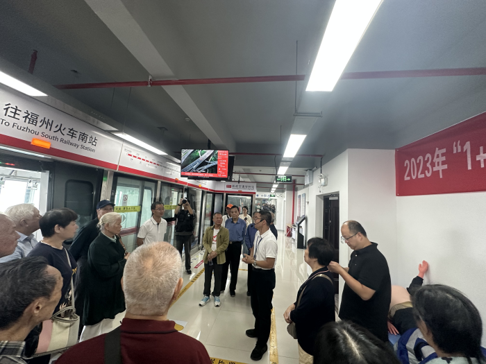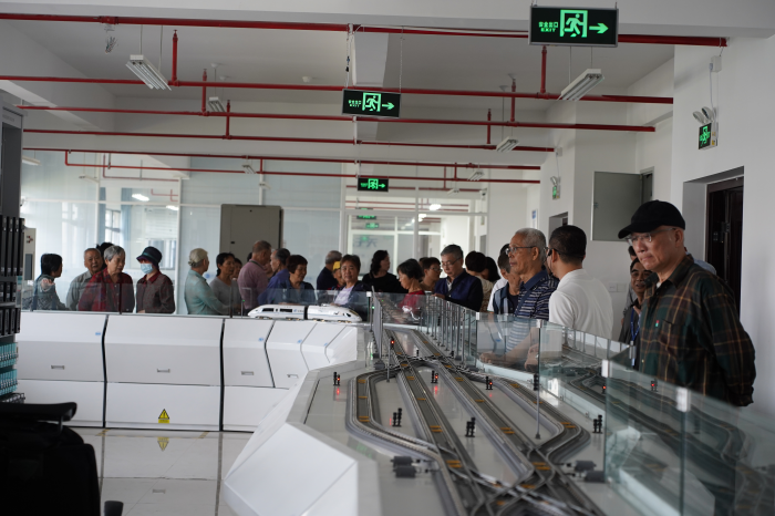第三階段,工會組織老同志們來到福建船政交通職業學院軌道交通學院,實地參觀了軌道交通學院專業群綜合實訓基地。通過學院工作人員的介紹,大家詳細了解了我省軌道交通行業目前的發展近況,并現場體驗了軌道交通列車模擬駕駛。