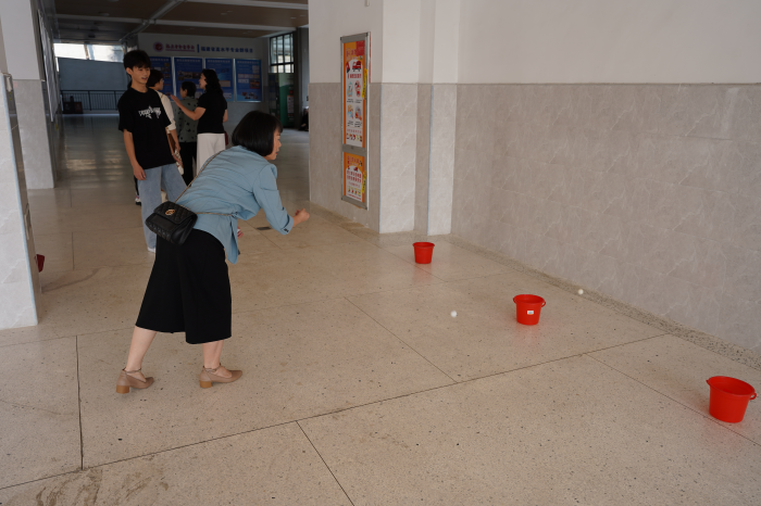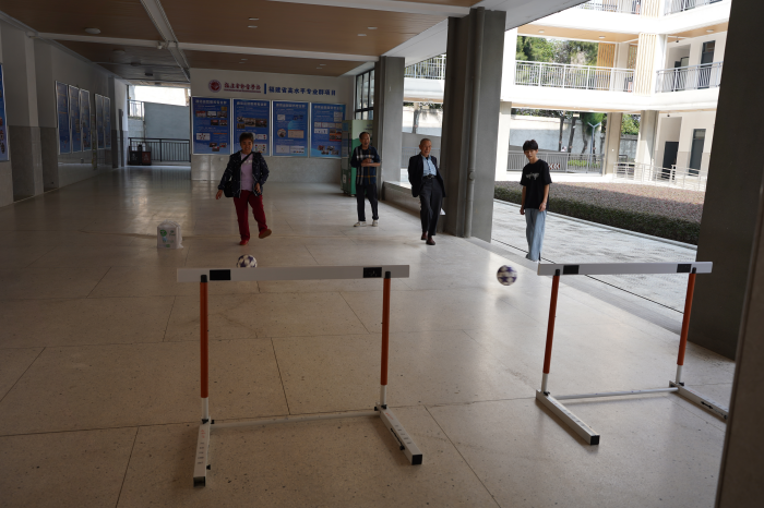 第二階段,工會組織老同志們參觀學校新實訓綜合樓,并開展了趣味健身運動會。活動設有乒乓球彈射、足球射小門、定點套圈等項目。在比賽現場,老同志們相互比拼,熱情交流,在輕松愉快的體育賽項中享受快樂,也展現了學校退休老同志健康向上的精神風貌。
