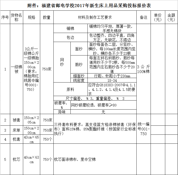 福建省郵電學(xué)校2017年新生床上用品采購(gòu)招標(biāo)公告
