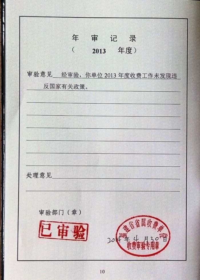 根據福建省物價局《關于開展2013年度省屬單位收費年審工作的通知》(閩價費〔2014〕59號)文件精神,我校向省物價呈報了《2013年度收費年檢自查表》、《2013年度收費年收費審驗報告書》、《收費許可申請表》。省物價局對我校收費公示執行情況、收費標準執行情況、收費項目執行情況、收費資金管理情況等進行檢查,對我校2013年收費工作的審驗結果是“你單位2013年度收費工作未發現違反國家有關政策”。此外,我校做好了收費許可證變更和換證工作。