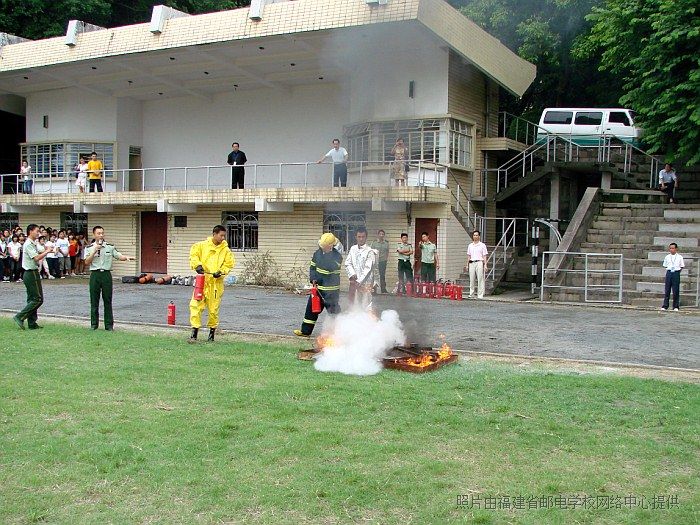 當天下午學校還邀請了倉山消防大隊8位官兵來校舉行消防安全講座和滅火演練。首先,全體08級新生集中在禮堂,由倉山消防大隊鄭教官給大家講火災的危害性、滅火方法、火場如何逃生、發生火災如何報警、校園防火安全注意事項等內容的防火安全講座。之后在學校操場進行滅火實戰演練,全體08級新生和部分教職工及學校保安都參加,消防官兵進行了示范,師生涌躍參與,針對部分師生的不規范的動作,鄭教官都作了詳細的講解和更正,使大家都掌握正確的滅火方法,使本次演練取得非常好的效果。
