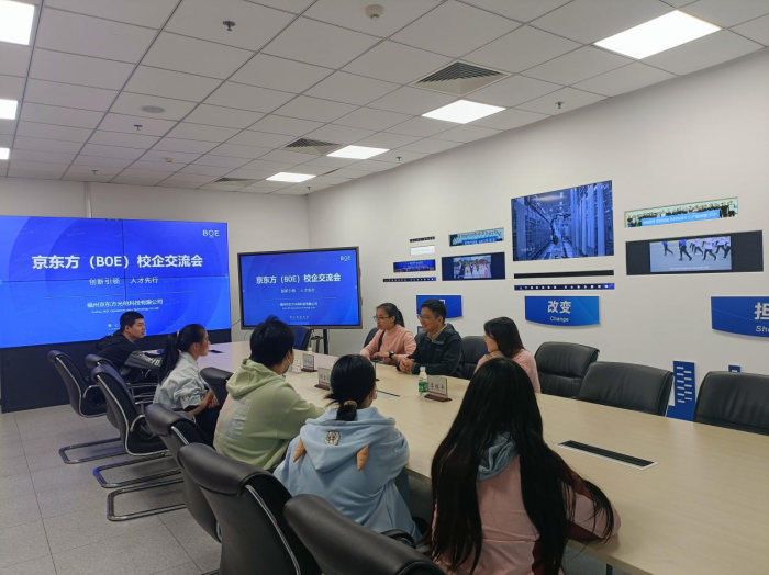 慰問期間,福州京東方光電科技有限公司主要負責人熱情接待了我校老師,帶領老師們參觀了公司的智慧長廊,了解公司的發展歷程和人才培養機制。隨后,雙方舉行座談會,公司負責人詳細介紹了我校學生頂崗實習有關情況,并對我校人才培養質量和學生的工作表現給予充分肯定,向學校全體老師的辛勤培育表示由衷的感謝。