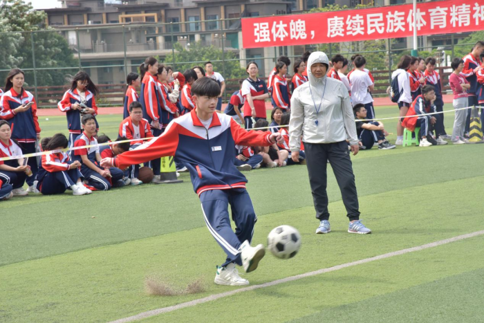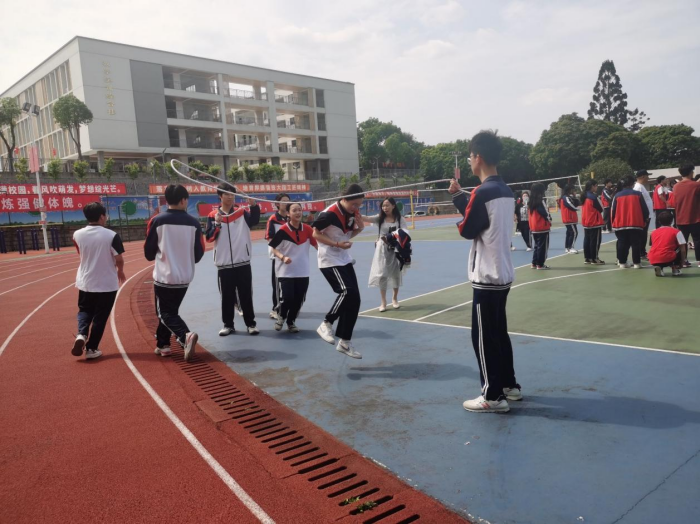 比賽中,各個(gè)班級(jí)精誠(chéng)合作,爭(zhēng)相在各個(gè)項(xiàng)目上發(fā)揮出最佳水平。班主任們不僅為同學(xué)們吶喊加油,還紛紛披掛上陣。綠茵場(chǎng)上陽(yáng)光燦爛,歡笑不斷。旱地龍舟在足球場(chǎng)上舉行,哨聲響起后,口號(hào)聲、加油聲、歡呼聲此起彼伏,大家齊心協(xié)力,劃著“龍舟”搖搖擺擺沖向終點(diǎn),也奔向熱烈的青春歲月。在足球九宮格項(xiàng)目上,選手們瞄準(zhǔn)數(shù)字,擺開姿勢(shì),出腳那叫一個(gè)快準(zhǔn)狠!足球破門而入的瞬間,激起場(chǎng)上的陣陣驚嘆和歡呼。而在籃球場(chǎng)上,雙人行和8字長(zhǎng)繩項(xiàng)目也如火如荼地進(jìn)行。不論是急轉(zhuǎn)彎過(guò)桿,還是在揮動(dòng)的長(zhǎng)繩之中魚貫而過(guò),陽(yáng)光為場(chǎng)上每位同學(xué)的臉龐都打上了一抹腮紅。靈巧的動(dòng)作,翻飛的長(zhǎng)繩,激動(dòng)的吶喊,加深了同窗情誼,也提高了團(tuán)隊(duì)凝聚力,將本次體育節(jié)的氣氛推向高潮。